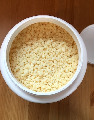The detergent comes in powder form. The powder is large, beige kernels that look like soap. It certainly looks different from traditional laundry detergent, but it does have a more natural look. It also smells great! The scent isn’t strong, but it has a pleasant, clean scent. It doesn’t smell like it has added fragrance, but just a clean, fresh scent most likely from the lemon essential oil in the ingredients.